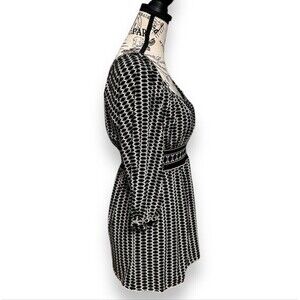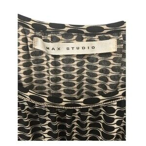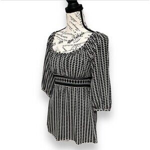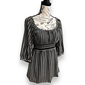 Max Studio S Black Cream Boho Geometric Tunic Top Empire Waist Stretch Y2K