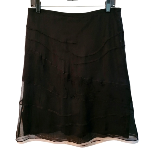 Max Studio SILK Special Edition Layered Decorative Stitched White Hem Skirt S