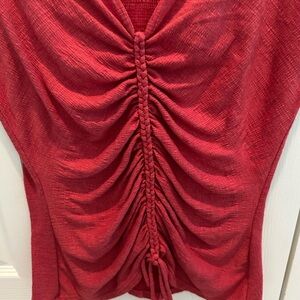 Max Studio Chic scarlet fitted top with ruched front. Perfect paired with shorts or a skirt with sandals for the perfect spring/ summer look