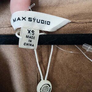 Max Studio Shacket Button Front Shirt Women Vicuna Brown Faux Suede Size XS.