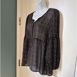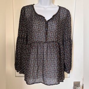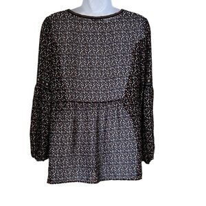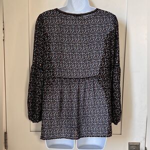 Max Studio Sheer Black Multicolor Long Sleeve empire Waist Blouse top sz M