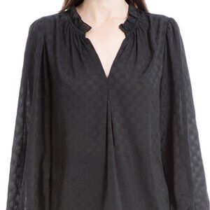 Add a touch of elegance to your wardrobe with this sheer black long sleeve blouse from Max Studio, featuring a classic polka dot print and delicate ruffle trim along the V-neckline. The cuffed wrists add subtle structure, while the lightweight, flowy fabric creates a romantic silhouette—perfect for both work and evening wear.