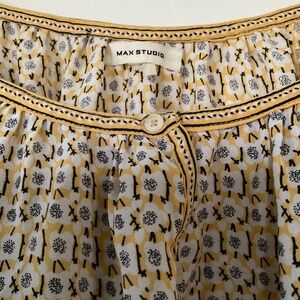 Max Studio Sheer Blouse Ruffle Balloon Bubble Sleeve Floral Boho Yellow