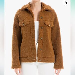 Max Studio Sherpa faux fur teddy jacket brown size medium