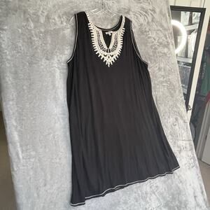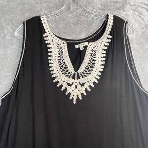 Max Studio Shift Dress Womens 2X Embroidered Sleeveless Black Floral Boho Plus