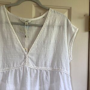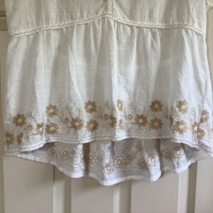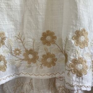 Max Studio Short Sleeve Floral Embroidered Hi/Low Cotton Blend Top Ivory SZ S
