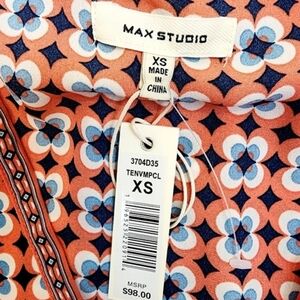 Max Studio Short Sleeve Floral Tie Waistline Blouse