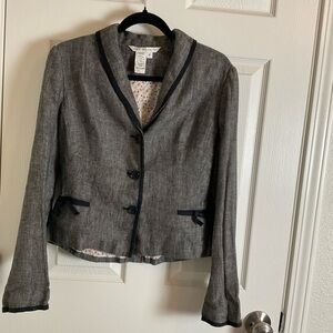 Max Studio Size 8 Elegant gray women's jacket -blazer featuring stylish black trim. Perfect for a sophisticated look.