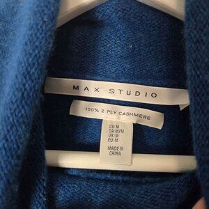 Max Studio Size M 2-Ply 100% Cashmere Long Sleeve Turtleneck Sweater Blue