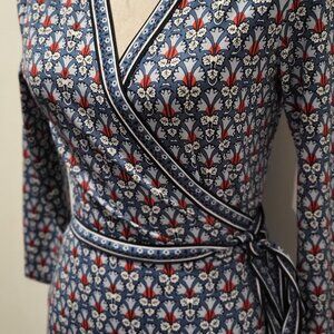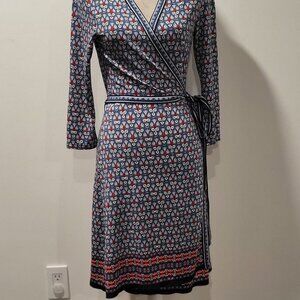 Max Studio Size M, Blue Patterned Wrap Dress, long sleeved