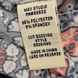 Max Studio Size M, Blue Patterned Wrap Dress, long sleeved, 95% Polyester, 5% Spandex, Machine Wash Cold, beautiful low cut, ties at waist, very comfortable for work or play!