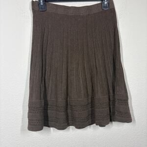 Max Studio Size Medium Knit Fit Flare Skirt Brown Cotton A Line Knee Length
