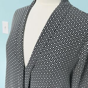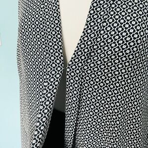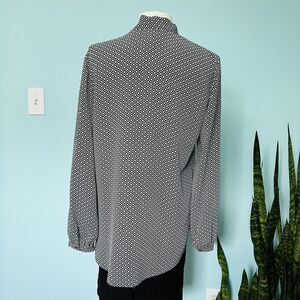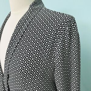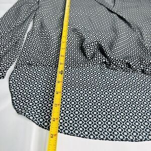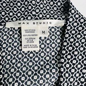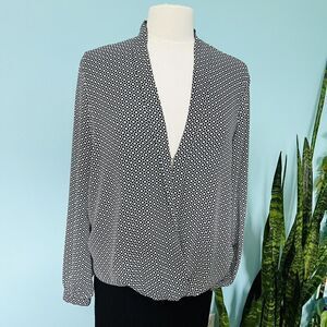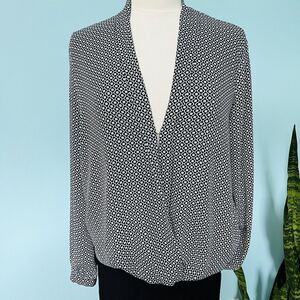 Max Studio Size Medium Long Sleeve Surplice Wrap Blouse Black White Clower 0660