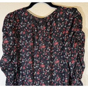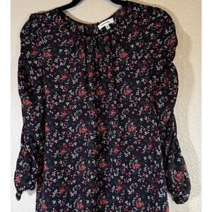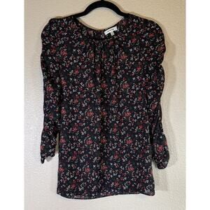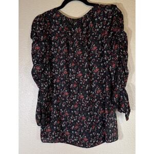 Max Studio Size Small Ditsy Floral Black Ruched Long Sleeve Blouse