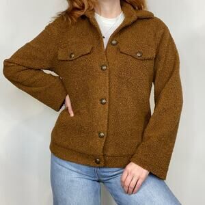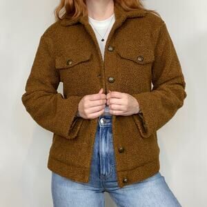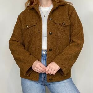 Max Studio Size Small Neutral Brown Retro Style Fleece Teddy Coat Jacket