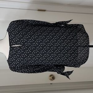 Max Studio Size XS Black with White Polka Dot Split Sleeve with Tie End Blouse