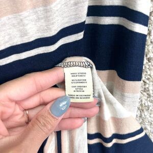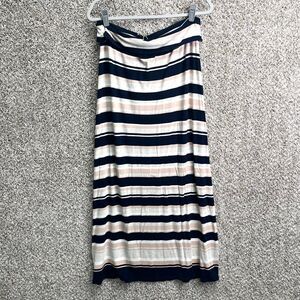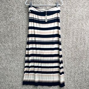 Max Studio Skirt Women’s Large Navy Blue and Beige Striped Fold-over Maxi NWT