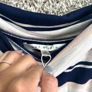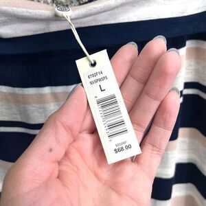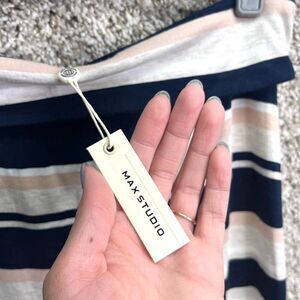 New with Tags Women’s Max Studio Navy Blue and Beige Striped Fold-over Maxi Skirt in Size Large