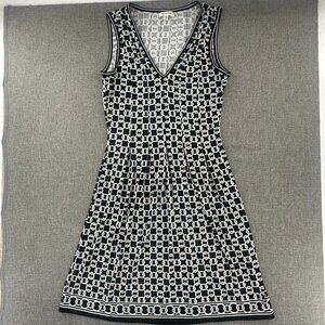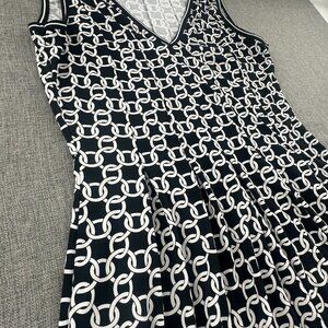 Max Studio Sleeveless A-Line Dress XS Black White V-Neckline Chain Link Pattern