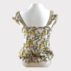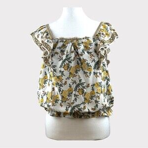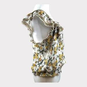 Max Studio Sleeveless Floral Blouse - elastic hem with ruffle - so cute - Size M - covers bra straps completely - NWT