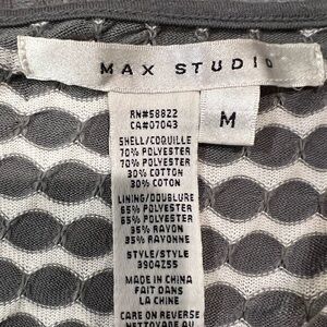Max Studio Sleeveless Peplum Sweater Dress gray and White size medium. A sleeveless sweater dress perfect for work - layer on a blazer for a formal look. Gray and white lightweight knit string-of-beads stripes with a sleeveless, fitted silhouette, scoop neck, and a peplum to accentuate your waist. Smoke free home.