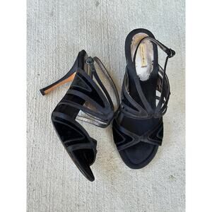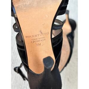 Max Studio Slip On Black Fabric Leather Ankle Strappy Sandal Heel Shoe Size 6M