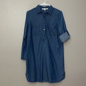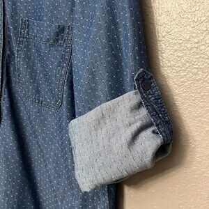 Max Studio Small Chambray Dress Blue Long Tab Sleeves