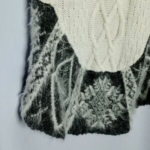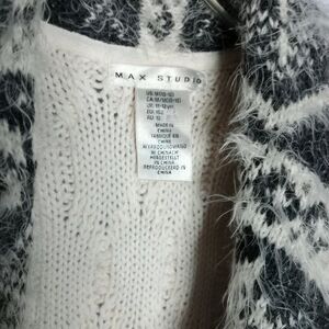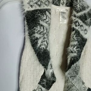 Max Studio Soft Open Cardigan Vest Sweater Faux Fur Trim Cable Knit Long sz: Med