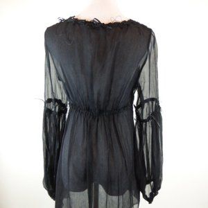 Max Studio by MAX AZRIA 100% SILK Sheer black top..SCOOP NECK WITH RIBBON TRIM..EMPIRE STYLE WAIST..LONG SLEEVE..