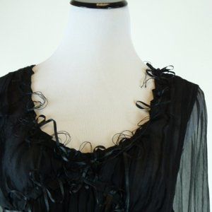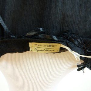 Max Studio Special Edition MAX AZRIA SILK Sheer black ribbon top M baby doll