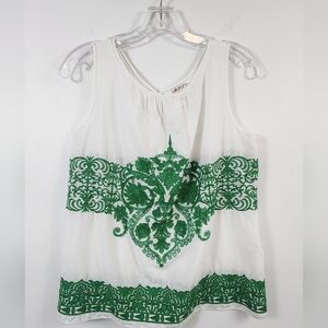 Max Studio Specialty Product Women's White Green Embroidered Women's Top, sz SM