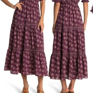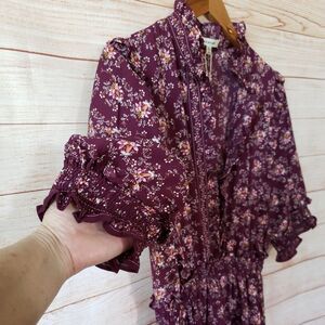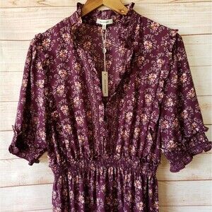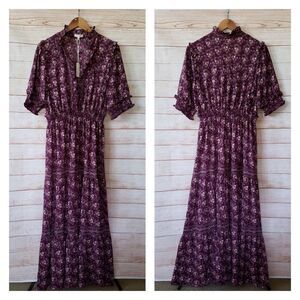 Max Studio Split Mock Neck Tiered Floral Print Maxi Dress Short Sleeves Size XL