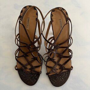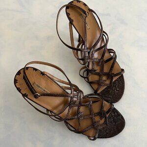 Max Studio Strapy Brown Snake Skin Open Toe Heels