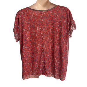 Max Studio Stretch Net Flutter Sleeve Floral Size 1X NWT $78 Lined Pullover Blo