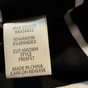 Max Studio Striped Dolman Blouson Bat Wing Dress, Black White, Medium, NWT. Chic and ultra comfortable, this dress is perfect for work, travel or weekends. Featuring a boat neckline, relaxed blouson bodice, and fitted skirt that flatters every figure. The soft stretch rayon blend knit moves beautifully with you. 95% rayon, 5% spandex. Back keyhole, banded waist, bat wing sleeves. New with tags, retails for $98. #MaxStudio #DolmanDress #Blouson #Minimalist #BoatNeck #StretchKnit