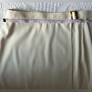 Brand new with a tags Max Studio skirt,a stunning addition to your wardrobe. This elegant skirts color is Bone. With a flattering buckle on the side. Made from 98% polyester and 2%spandex, it’s not only stylish but also comfortable to wear. The skirt is without lining. Near the bottom of the skirt, there is a small stain which could be washed out, look at photo provided. Waist 15”. Length of skirt 28”. Measurements are flat lay and approx. Feel free to ask any questions. Offers are welcome.