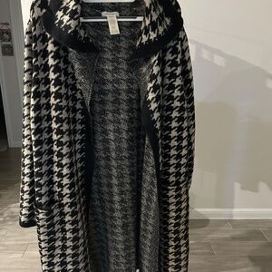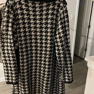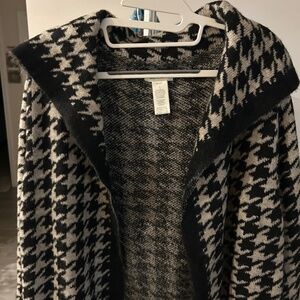 Sweater jacket with shawl collar, front pockets. Back and cream. Excellent condition
