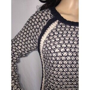 Max Studio Sweater Small Navy Blue Ivory Texture Knit Raglan Sleeve Wool Blend