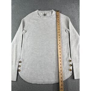 Max Studio Sweater Womens Small White Ivory Long Sleeve Button Accent Cut Comfy