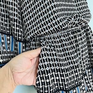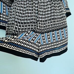 Max Studio Sz S Womens Black Blue White Floral Romper Pockets Tie Zipper 0773