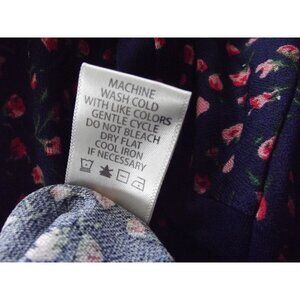 Max Studio Sz Small Navy Blue Pink Rosebud Floral Print Sleeveless Tiered Dress