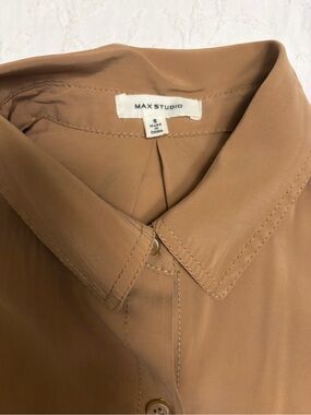 Max Studio Tan Collared Button-Front Shirt