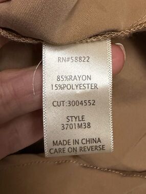 Khaki Color, Collar, V Neck, Roll Tab Sleeves, Button Front, Two Chest Pockets, Pleated Back