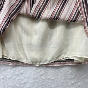 Max Studio Tank Top Women's S Beige Pink Striped V Neck Tie Neck Ruffles Halter