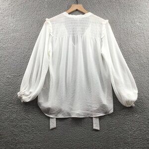 Max Studio Tie Neck 3/4 Sleeve Blouse Ivory S