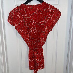 Max Studio V-Neck Tie Waist Short Sleeve Short Sleeve Flutter Sleeve