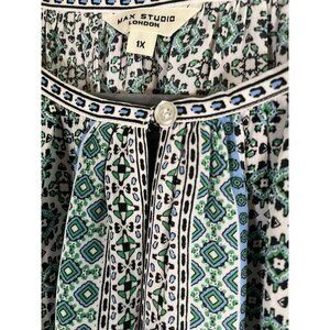 Max Studio Top 1X Blue Pullover Floral Boho Festival Fairy Neutral Preppy Flowy