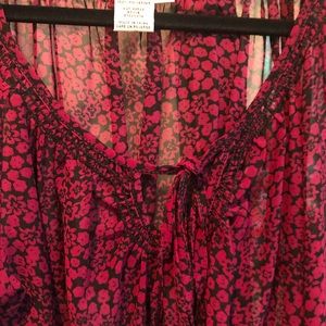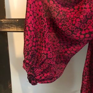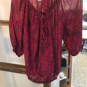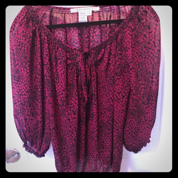 Black and Dark Magenta sheer top. Elastic 3/4 sleeves and elastic waist. Perfect for going out or to the office.