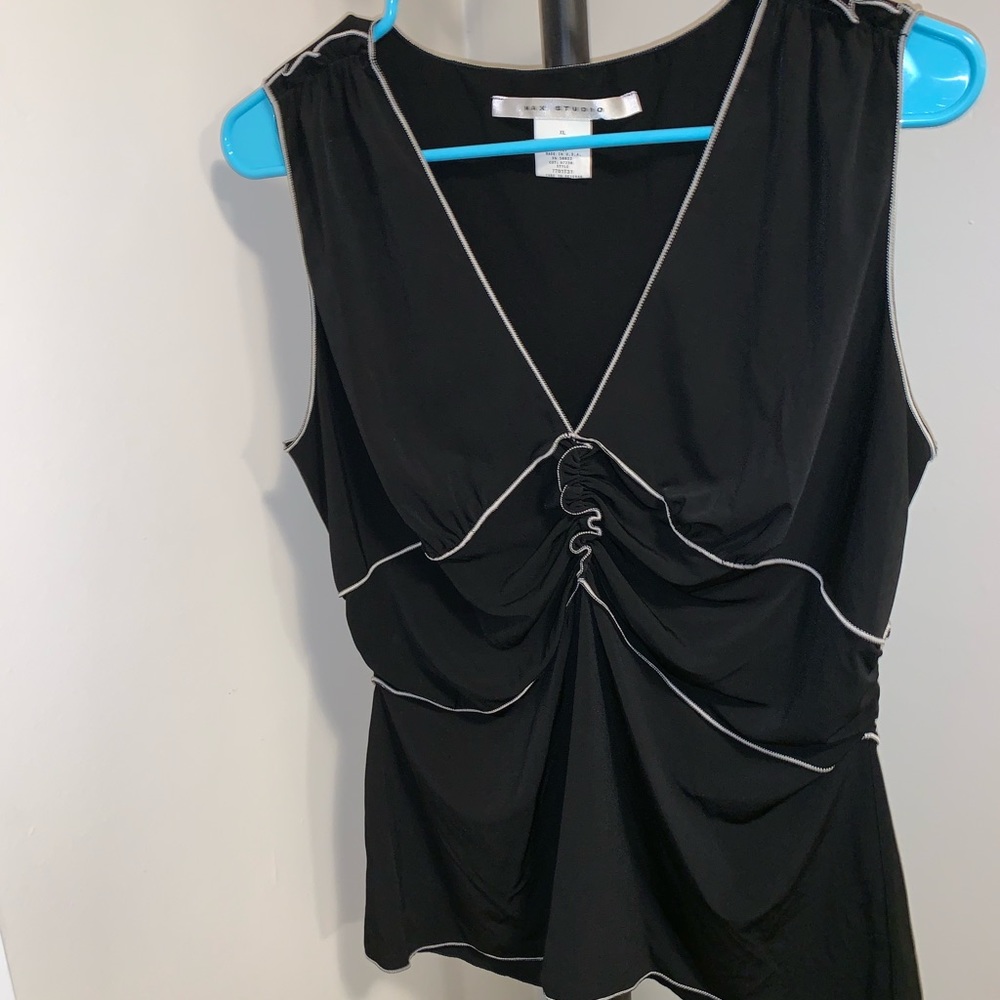 Cute tank top, black with cream piping