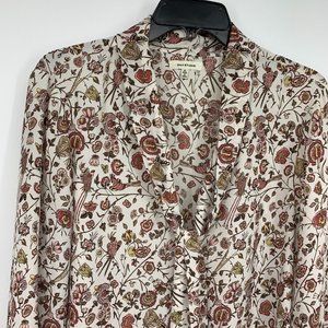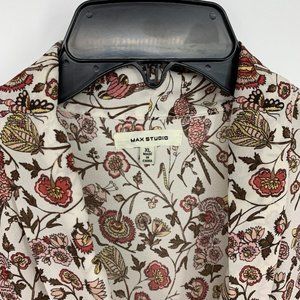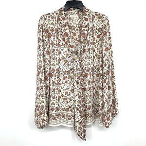 Max Studio Top Floral Print Tie Neck Long Sleeve White Blouse
